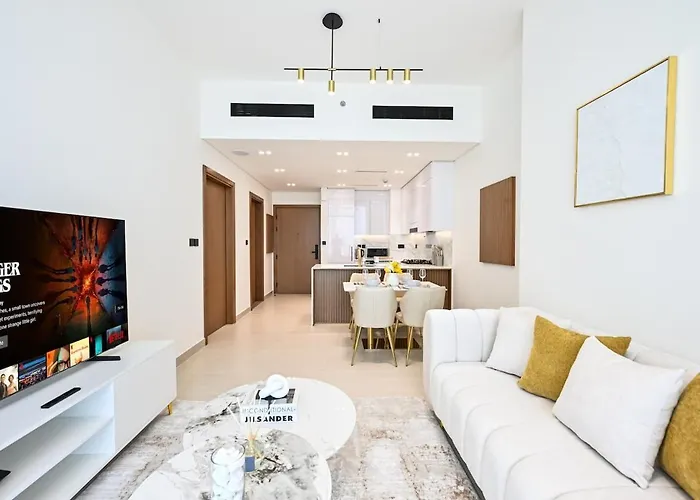 The 1-room Binghatti Amber I Modern 1Br Apartment I Balcony, Pool & Gym Access Dubai is located 15 minutes by car from the Dubai Media City Amphitheatre and 1.8 km from the Dubai International Stadium. Wi-Fi and a free private car park are also available at this apartment.